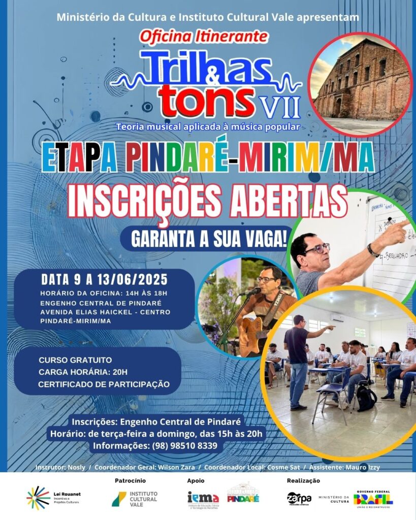 A terceira etapa da 7ª Edição da Oficina Trilhas e Tons ocorreu na cidade de Pindaré-Mirim, no Maranhão, de 9 a 13 de junho de 2025, com 25 alunos inscritos.